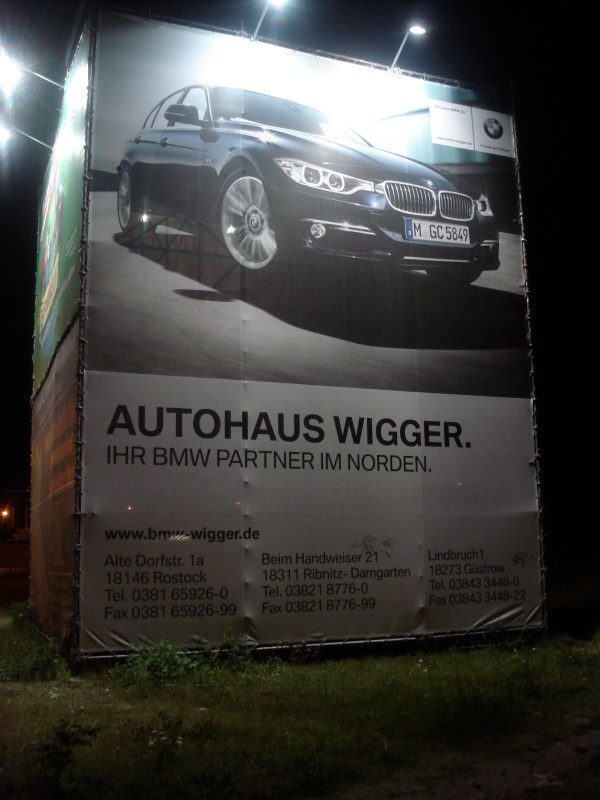 Lets’ start off with the best one. Get right into it. It was late, dark and quite miserable in Rostock. UNTIL I SAW THIS BILLBOARD!